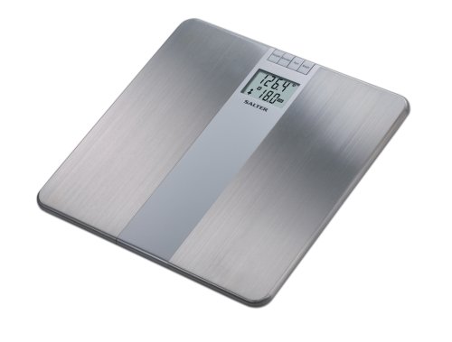 5 year warranty.Oversized yet slim platform.Sleek, brushed stainless steel look.Capacity up to 350 lbs in simple scale only mode.Analyzes body fat and body water readings. Salter Housewares features a stunning stainless steel scale that also operates as a precise body fat analyzer that uses bio-electrical impedance analysis (BIA). The platform is almost entirely brushed stainless steel for a sleek, modern appearance. The platform is oversized yet surprisingly slim and thin. 2 lines of information on the 1.6" LCD highlight body fat and body water measurements to the 0.1%.Salter 9109 Stainless Steel Body Fat and Body Water Scale Features.